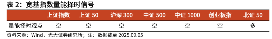 从量能择时信号来看,截至9月5日,除北证50外,其余指数量能择时信号均为谨慎观点。