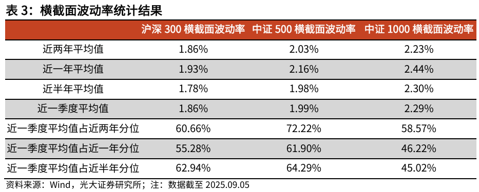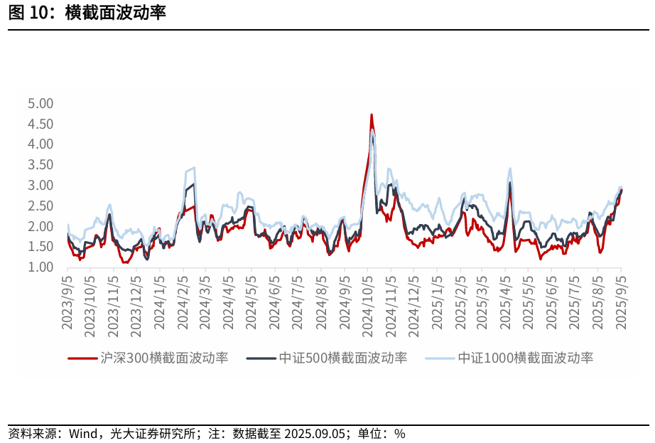 截面波动率来看,最近一周沪深300、中证500、中证1000指数成分股横截面波动率环比前一周上升,短期Alpha环境好转。