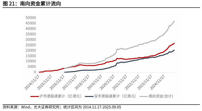 本周港股通交易区间为2025年9月1日-2025年9月5日,南向资金净流入330.60亿港元,其中沪市港股通净流入166.21亿港元,深市港股通净流入164.39亿港元。