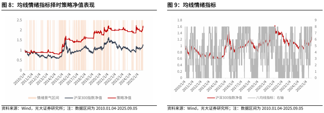 截至2025年9月5日,从均线情绪指标来看,近期沪深300指数处于情绪景气区间。